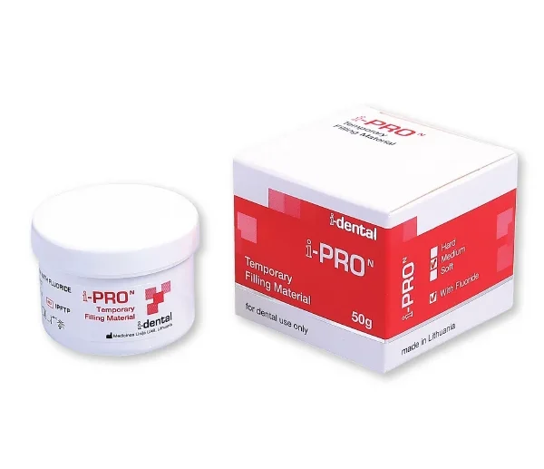 Relleno autopolimerizable, sin eugenol, bioinerte para uso temporal a base de óxido de zinc y resinas sintéticas que fraguan en presencia de humedad.