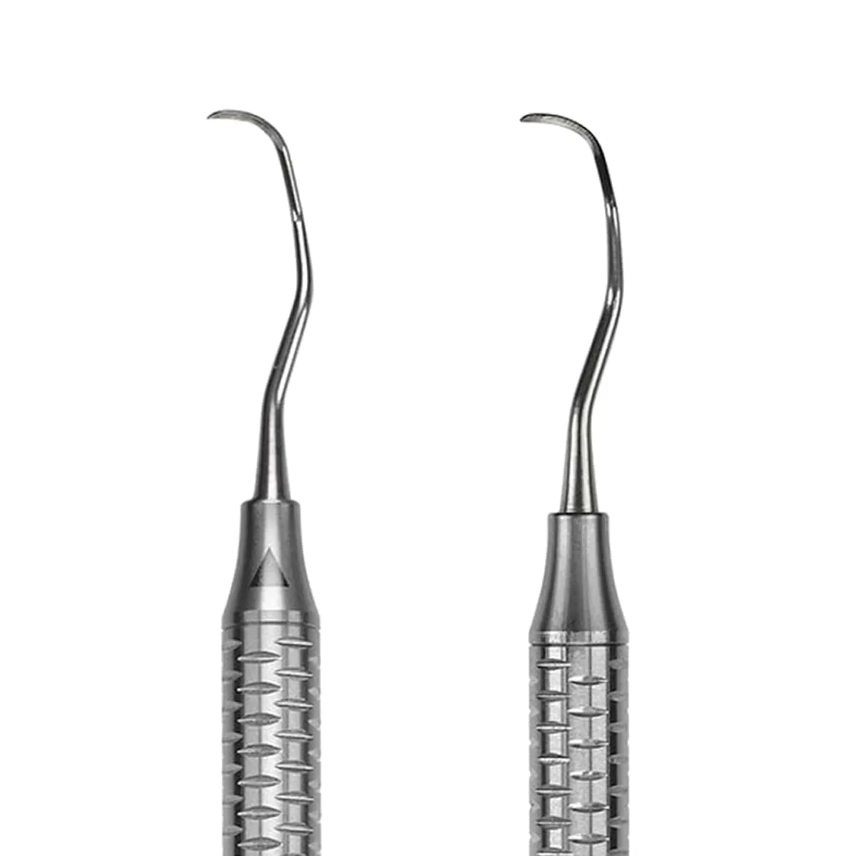 Cada instrumento incluye un detalle inteligente: una pequeña flecha en el mango que indica el lado afilado de la hoja, permitiendo una orientación visual instantánea en el campo clínico. Fabricadas con acero inoxidable de alta calidad, estas curetas combinan la maestría artesanal con la tecnología más avanzada para ofrecer un corte preciso y duradero.