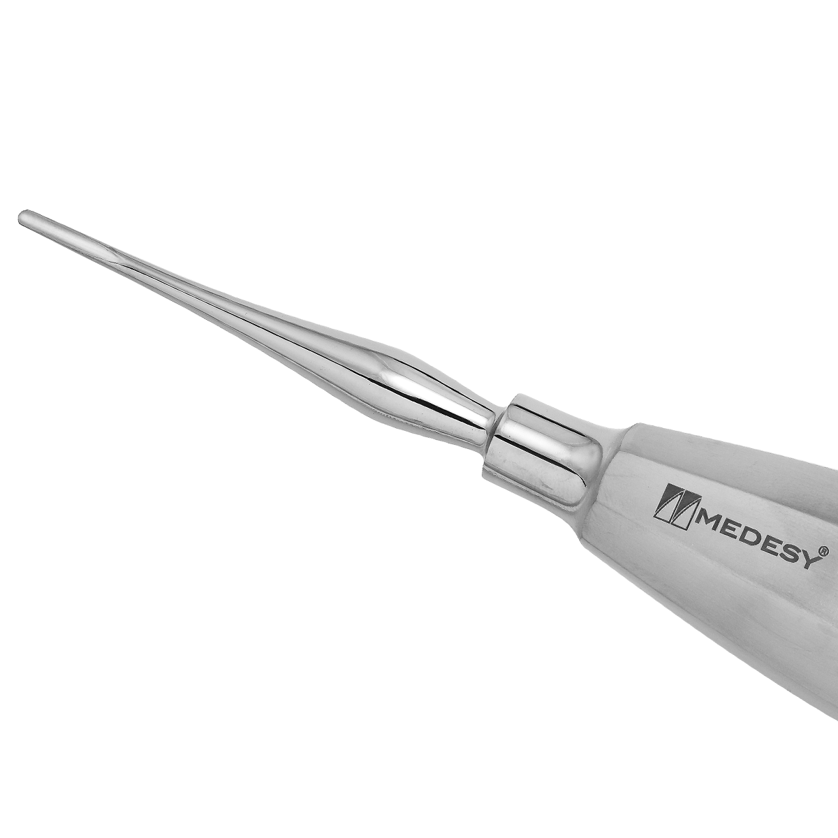 - Control de Presión: El diseño del mango estriado asegura un agarre firme, reduciendo el riesgo de deslizamiento durante la técnica de luxación.