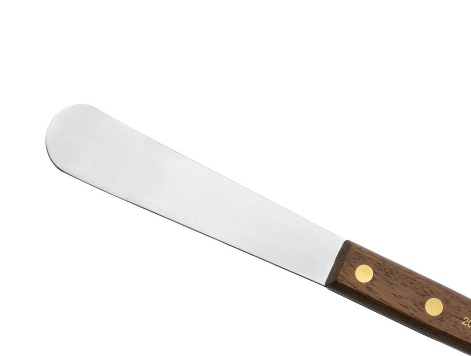 - Hoja: Fabricada en acero inoxidable de alta flexibilidad, con punta redondeada para adaptarse perfectamente a las paredes de las tazas de mezcla.