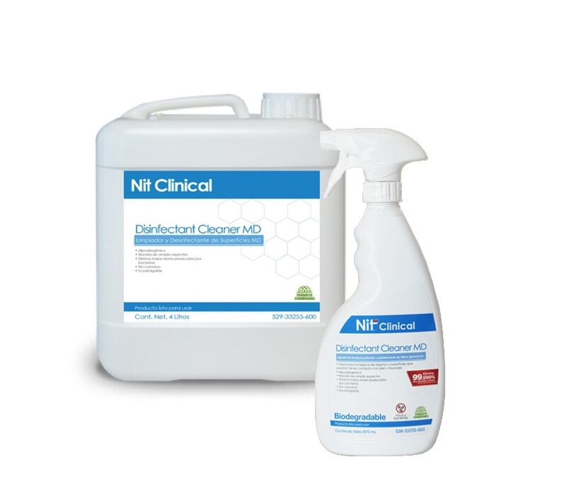 NIT Clinical Disinfectant de Grupo Sur es una línea de desinfectantes de alto nivel grado hospitalario, diseñada para eliminar bacterias, virus y hongos en superficies de alto riesgo. Su fórmula combina aldehídos, alcoholes y amonios cuaternarios de quinta generación para un efecto sinérgico rápido. Es apto para equipos médicos, áreas críticas, aislamiento y mobiliario en entornos de salud, destacando por ser libre de alquilfenoles etoxilados (APE-free).